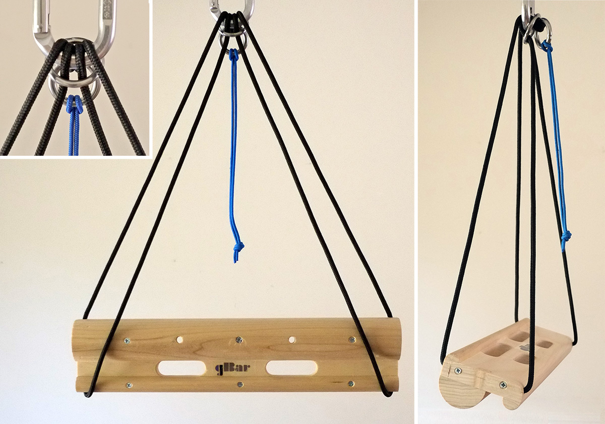 The gBar can also be made with the RipCord quick release adjustment system used by the Gstring PROs. This would allow you to quickly adjust the angle of the bar/type of grip without having to remove the bar from its mount.You will need 2 x 3 feet pieces of 5mm accessory cord. More if you want it to hang lower. Use the screw method for securing the ends of the cord as described above. For the rest of the instructions, follow steps #8-19 from our previous post on the Quick Release system. Thread both rings onto both cords together instead of crossing them as described.